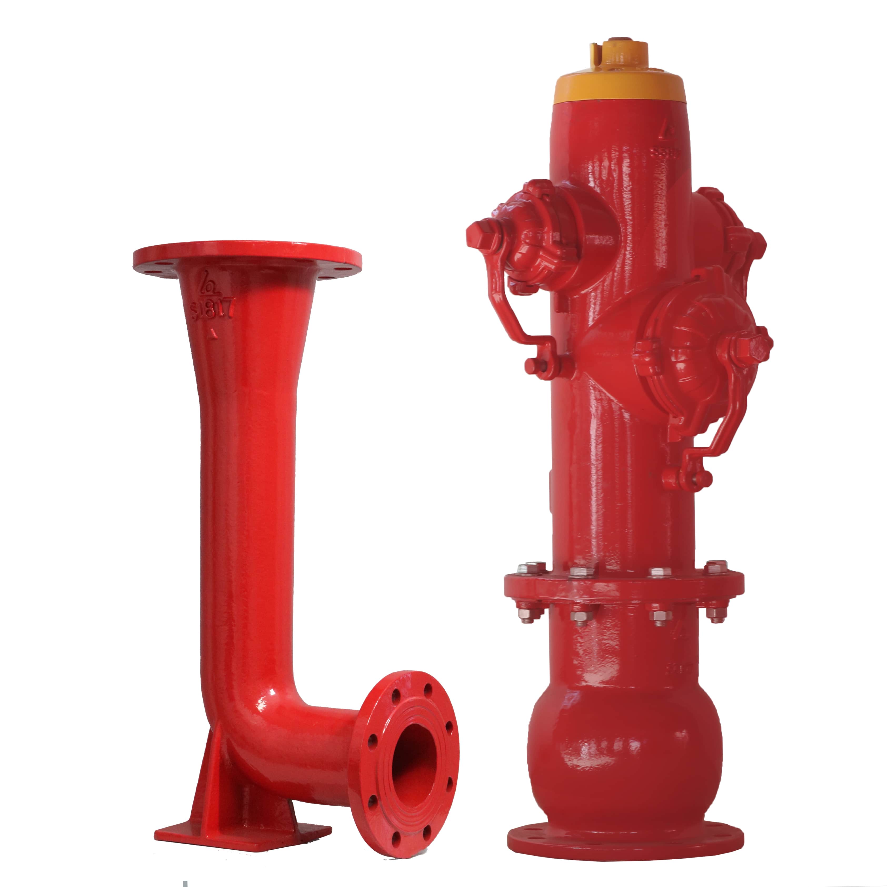 - Chân đế: dạng chữ L, hai đầu bích, một đầu nối vào hệ thống đường ống, một đầu nối vào bầu trụ. Chân đế thường được chôn dưới đất để nâng đỡ trụ lên trên mặt đất, sản xuất từ gang cầu FCD450, hai mặt được phủ bởi lớp sơn epoxy cao cấp với độ dày ≥300 μm