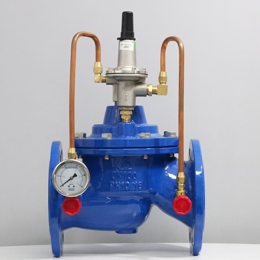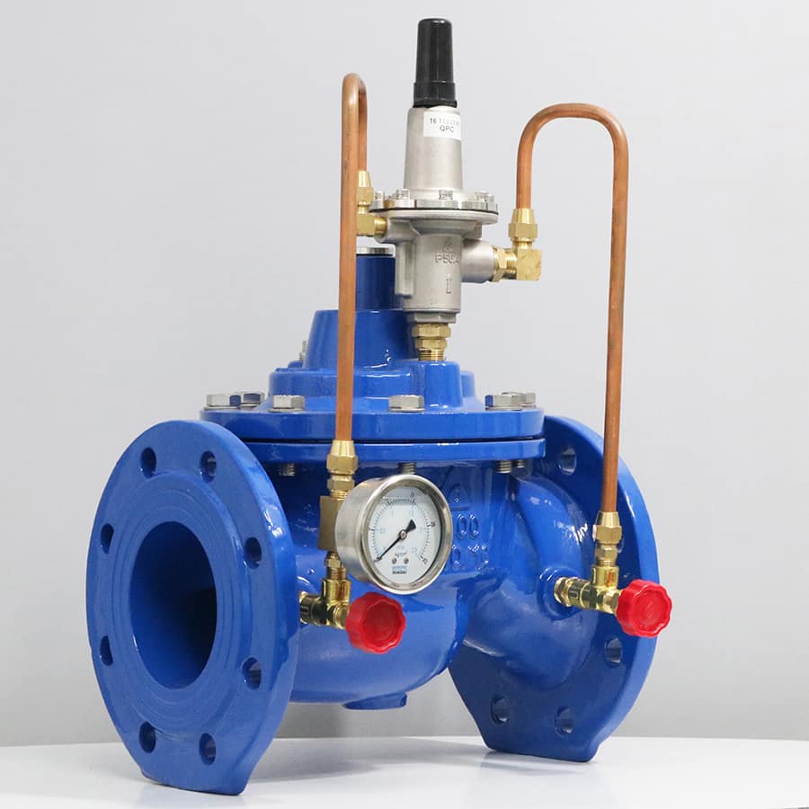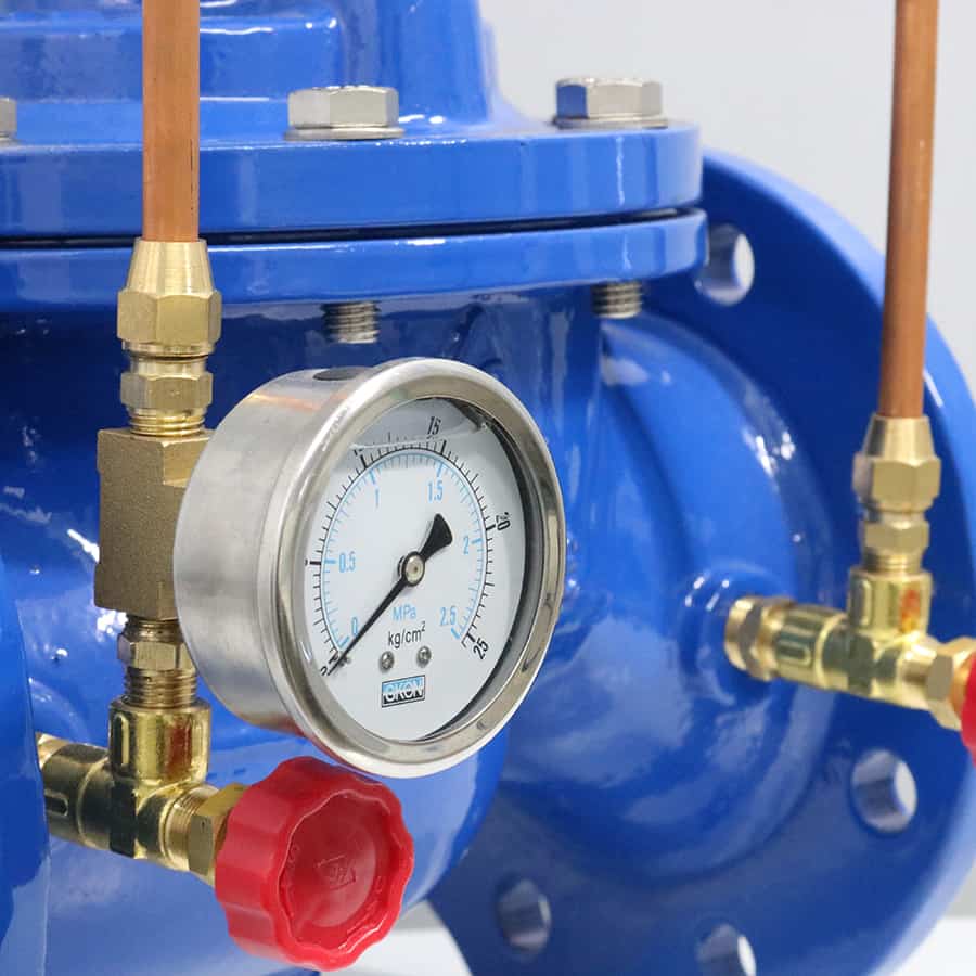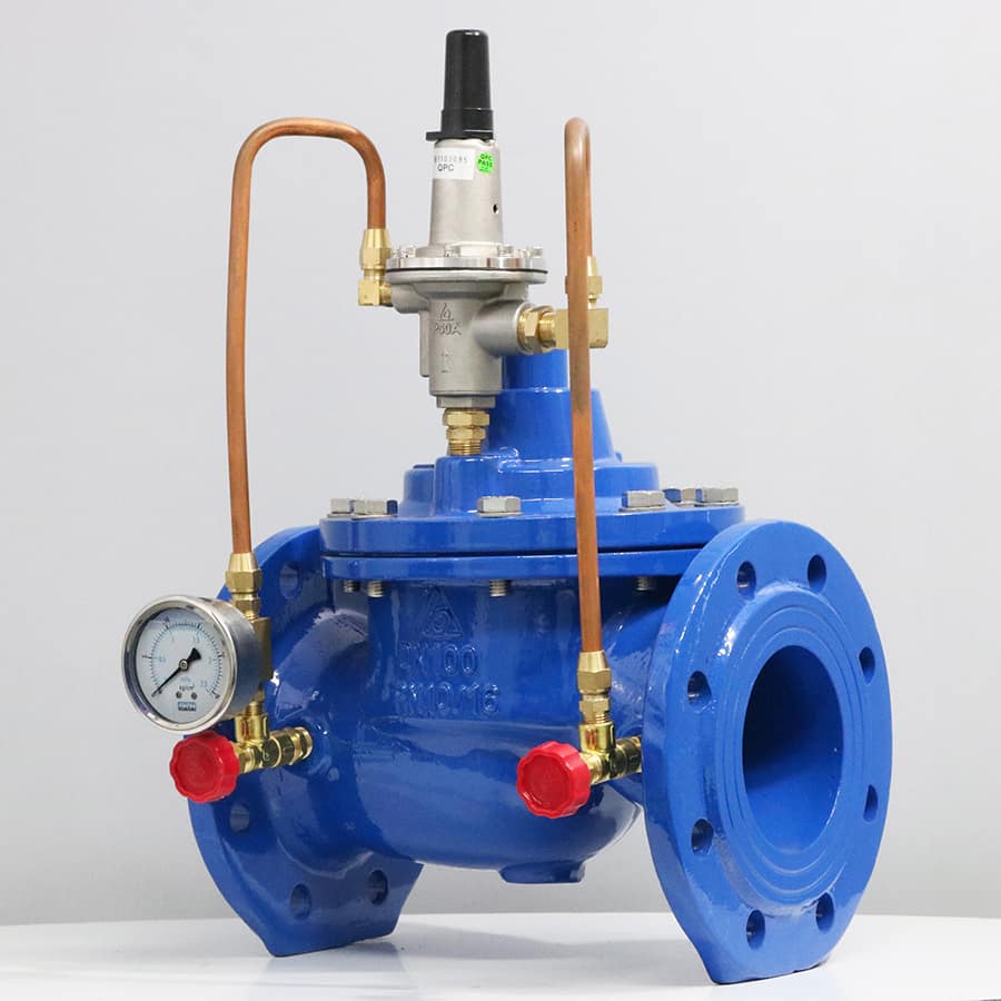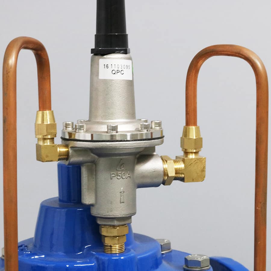 - Khi áp đầu vào vượt quá giới hạn đã định sẵn, pilot sẽ mở lá van để nước xả ra khỏi đường ống theo 1 đường ống nhánh.