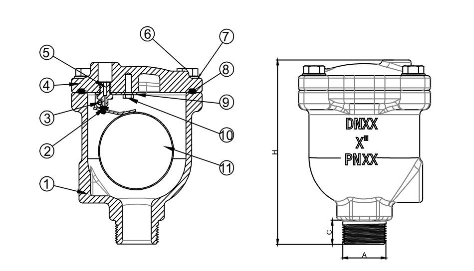 Khi không khí đi qua sẽ tự nổi lên, chui vào trong thân van xả khí, việc không khí nổi lên làm mực nước trong van bị giảm xuống, đồng thời phao cũng hạ xuống thả lá van ra để không khí thoát ra ngoài